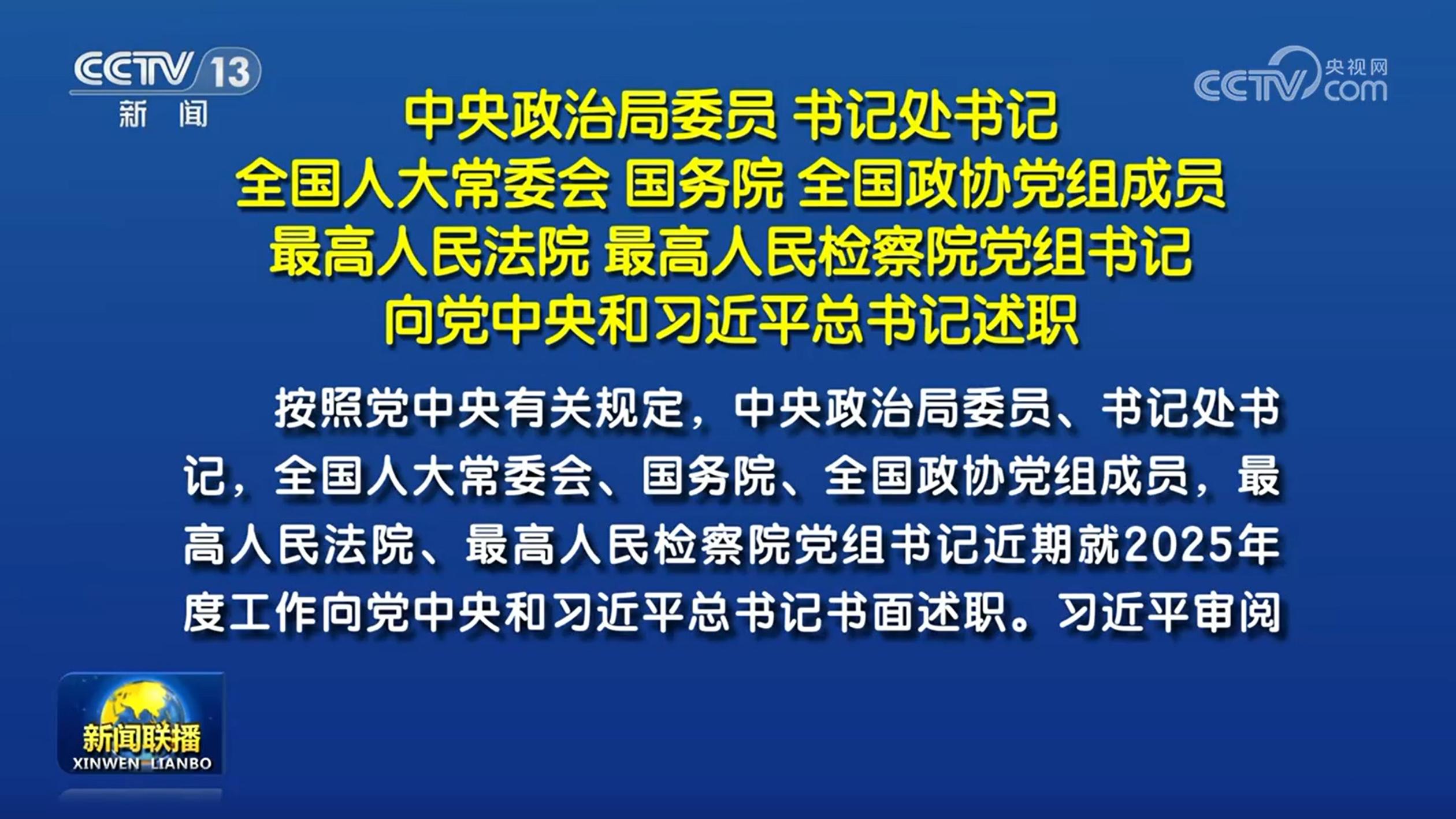 今天最新发生的重大新闻 新闻联播 20260226 19:00直播在线视频播放(回看) 今天央视新闻联播直播主要内容重大新闻: 1.中央政治局委员 书记处书记 全国人大常委会 国务院 全国政协党组成员 最高人民法院 最高人民检察院党组书记向党中央和习近平总书记述职;2.习近平签署第六十九号主席令; 3.【新思想引领新征程·非凡“十四五”】持续巩固拓展脱贫攻坚成果 扎实推进乡村全面振兴; 4.李强出席中德经济顾问委员会座谈会; 5.十四届全国人大常委会第二十一次会议在京闭幕; 6.【“十五五”开好局起好步】开新局启新篇 各地锚定目标谋发展; 7.2025年我国中小企业经济运行总体平稳; 8.【代表委员履职故事】李丰:加强新就业形态劳动者权益保障; 9.【新春走基层】青春逐梦 智创未来; 10.国内联播快讯: (1)商务部等七部门发布新版《鼓励进口服务目录》; (2)水利部推动重大引调水工程受水区落实节水优先; (3)京津冀协同发展12年外贸进出口值增长25.7%; (4)过去5年全国法院一审审结电诈犯罪案件15.9万余件; (5)未来几天我国中东部有持续降水; 11.伊朗与美国举行第三轮间接谈判; 12.俄称控制一居民点 乌称打击俄军集结区; 13.国际新闻最新消息: (1)朝鲜举行劳动党九大纪念阅兵式; (2)约旦河西岸多地遭犹太定居者和以军袭击; (3)IMF敦促美国减少贸易限制举措; (4)古巴称美籍快艇闯入古领海并发生交火; (5)南美洲多地遭暴雨并引发洪灾。 (《新闻联播》 20260226 19:00) 1.中央政治局委员 书记处书记 全国人大常委会 国务院 全国政协党组成员 最高人民法院 最高人民检察院党组书记向党中央和习近平总书记述职 中央政治局委员 书记处书记 全国人大常委会 国务院 全国政协党组成员 最高人民法院 最高人民检察院党组书记向党中央和习近平总书记述职 习近平审阅述职报告并提出重要要求,强调要增强政治责任感和历史使命感,以实际行动把党中央决策部署落到实处,推动实现“十五五”良好开局 按照党中央有关规定,中央政治局委员、书记处书记,全国人大常委会、国务院、全国政协党组成员,最高人民法院、最高人民检察院党组书记近期就2025年度工作向党中央和习近平总书记书面述职。习近平审阅述职报告并提出重要要求。 习近平强调,今年是中国共产党成立105周年,是“十五五”开局之年,要坚持以新时代中国特色社会主义思想为指导,深入贯彻党的二十大和二十届历次全会精神,认真落实四中全会部署,增强“四个意识”、坚定“四个自信”、做到“两个维护”,始终在思想上政治上行动上同党中央保持高度一致,增强政治责任感和历史使命感,以实际行动把党中央决策部署落到实处。要在各自职责范围内主动担当作为,坚持稳中求进工作总基调,完整准确全面贯彻新发展理念,扎实推动高质量发展,更好统筹发展和安全,持续保障和改善民生,保持社会和谐稳定,推动实现“十五五”良好开局。要严格落实中央八项规定及其实施细则精神,始终头脑清醒、怀德自重,在笃信、务实、担当、自律上当表率、作示范。要带头树立和践行正确政绩观,坚持从实际出发、按规律办事,努力为人民出政绩、以实干出政绩。要认真履行全面从严治党政治责任,一体推进不敢腐、不能腐、不想腐,推动营造风清气正的政治生态。 2.习近平签署第六十九号主席令 国家主席习近平2月26日签署第六十九号主席令。主席令说,根据中华人民共和国第十四届全国人民代表大会常务委员会第二十一次会议于2026年2月26日的决定: 免去王祥喜的应急管理部部长职务。 3.新思想引领新征程·非凡十四五:持续巩固拓展脱贫攻坚成果 扎实推进乡村全面振兴 2021年2月25日,习近平总书记庄严宣告,我国脱贫攻坚战取得了全面胜利,创造了又一个彪炳史册的人间奇迹!脱贫摘帽不是终点,而是新生活、新奋斗的起点。“十四五”时期,也是我国巩固拓展脱贫攻坚成果同乡村振兴有效衔接的5年过渡期,832个脱贫县接续奋斗,亿万脱贫群众正在奔向乡村全面振兴的美好未来。 春节假期刚过,广大脱贫地区已是一派生机勃勃的繁忙景象。 在湖南新化,新春招聘会火热开启。县内外106家企业带来3600多个岗位,为脱贫人口搭建起“家门口”的就业桥梁。 在贵州丹寨,蓝靛飘香的蜡染工坊里,绣娘们正加紧赶制2026马年的第一笔文创服饰订单,用一双双巧手勾勒出新春的希望。 贫困是人类社会的顽疾,反贫困始终是古今中外治国安邦的一件大事。党的十八大以来,以习近平同志为核心的党中央把脱贫攻坚作为全面建成小康社会的底线任务,组织开展了声势浩大的脱贫攻坚人民战争。 习近平总书记亲自指挥、亲自部署、亲自督战,8年里走遍14个集中连片特困地区,创造性地提出精准扶贫理念,实行“六个精准”“五个一批”,不断丰富中国特色反贫困理论的内涵。 经过8年攻坚拔寨,2021年2月25日,中国向世界庄严宣告,脱贫攻坚战取得了全面胜利,区域性整体贫困得到解决。 为了把脱贫攻坚成果巩固住、拓展好,实现同乡村振兴有效衔接,总书记要求,对脱贫县要“扶上马,送一程”,设立过渡期,保持主要帮扶政策总体稳定。 2025年是过渡期最后一年,脱贫地区将如何接续发展,总书记再次作出部署,要把常态化帮扶纳入乡村振兴战略统筹实施,守牢不发生规模性返贫致贫底线。 “十四五”时期,是巩固拓展脱贫攻坚成果同乡